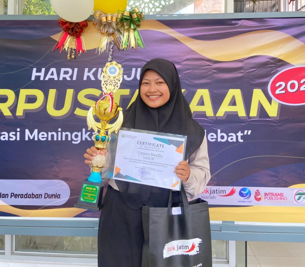 LPM Fenomena – Ummu Nazilla, mahasiswi Program Studi Pendidikan Bahasa dan Sastra Indonesia (PBSI) sekaligus Duta Perpustakaan Universitas Islam Malang (Unisma), berhasil meraih Juara 3 Lomba Resensi Buku dalam rangka Peringatan Hari Kunjung Perpustakaan dan Kearsipan yang digelar di Perpustakaan Unisma, Senin (18/11/2024).