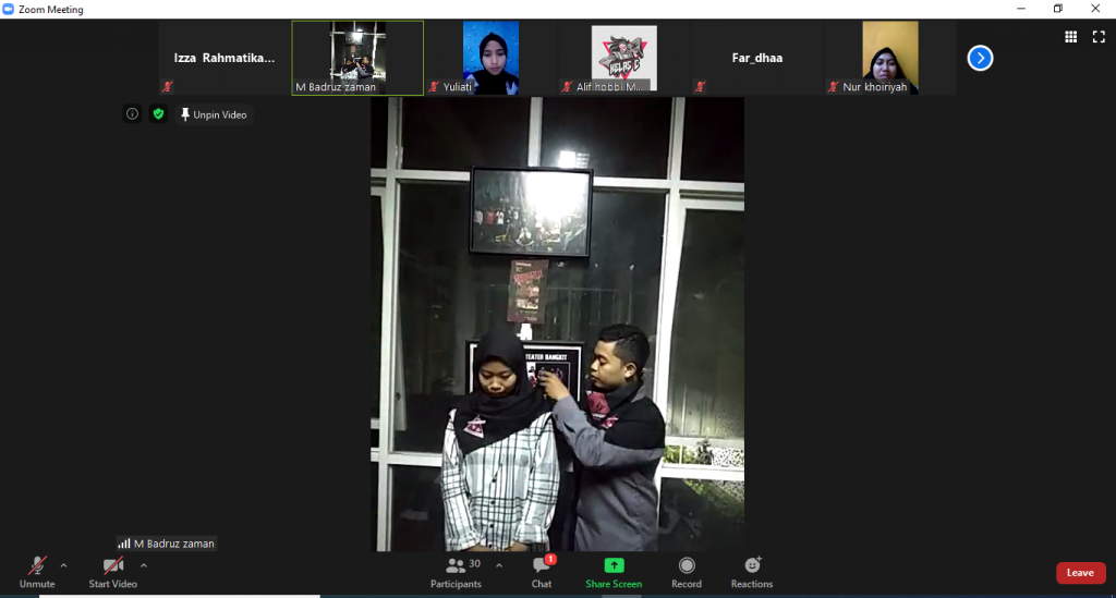 Pengukuhan anggota resmi BSO Teater Bangkit digelar virtual melalui aplikasi zoom Senin lalu (21/9). Selain pengukuhan virtual, Mas Kucing dan Mas Yayak, alumni Bangkit turut hadir untuk agenda Sharing Session soal Keaktoran dan Penulisan Naskah.